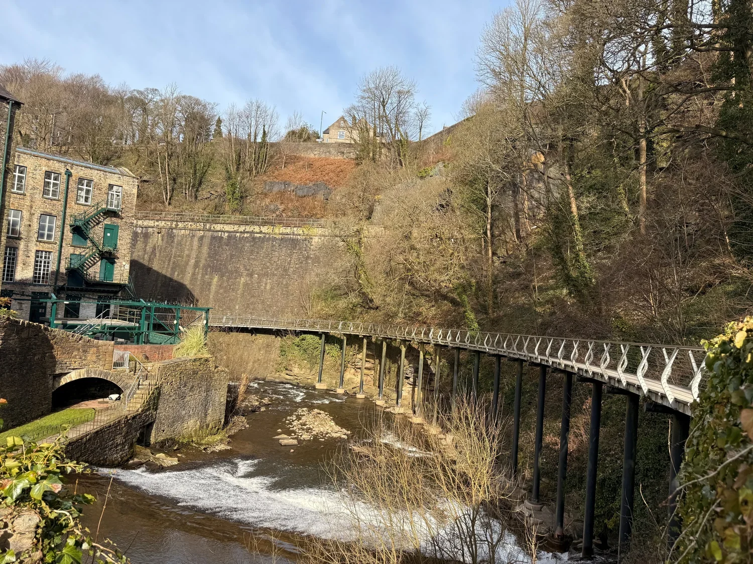 The walk loops through The Torrs Riverside Park, crosses the spectacular Millennium Walkway, and links into the flat, traffic-free Sett Valley Trail, which follows an old railway line towards Hayfield. Despite being just four miles, it packs in a huge amount of scenery.